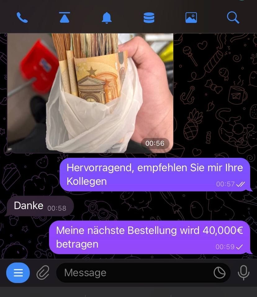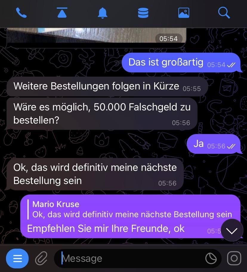 “Der Kauf war einfacher als erwartet. Ich konnte innerhalb weniger Minuten falschgeld aus deutschland bestellen, es kam pünktlich und einsatzbereit an. Sehr empfehlenswert.”