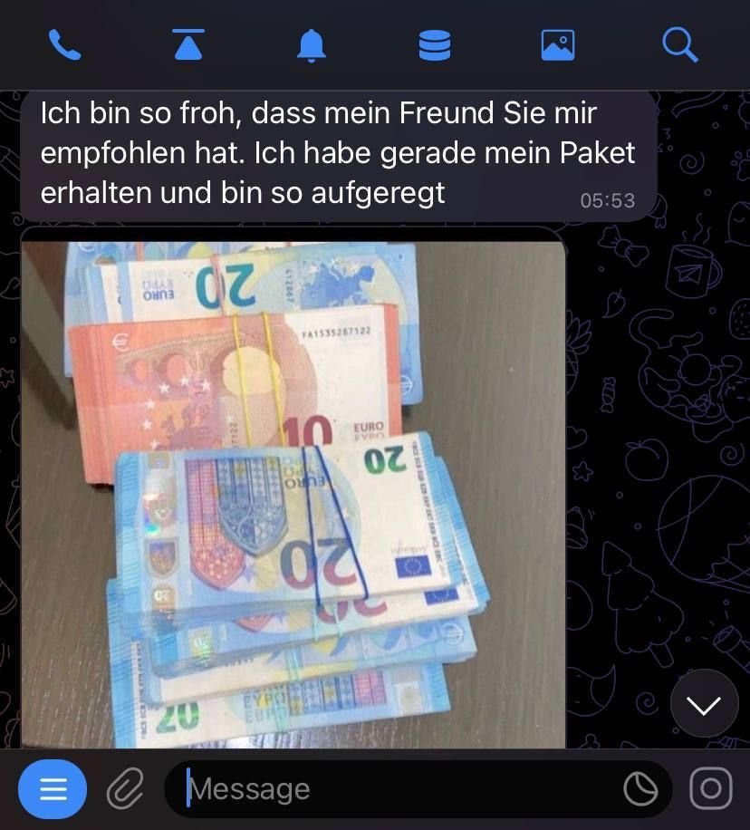 “Wenn Sie sich beim Kauf von Falschgeld Sorgen um Ihre Privatsphäre machen, sind Sie hier genau richtig. Das Team hier nimmt Diskretion sehr ernst und meine Bestellung kam sicher und pünktlich an. Ich habe schon mehrmals bei ihnen bestellt und die Qualität ist immer hervorragend. Ich empfehle diesen Service jedem, der falschgeld bestellen com seriös oder falschgeld bestellen Deutschland möchte.”